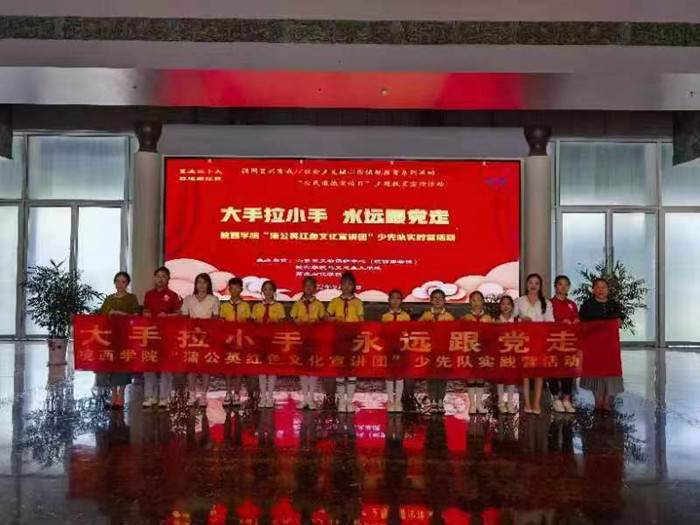 9月16日上午,马克思主义学院中国近现代史纲要教研室主任王俊副教授和思想道德与法治教研室时梦老师带领“蒲公英红色文化宣讲团”的陆新雅、陈许诺两位同学来到六安市皖西博物馆,参加主题为“大手拉小手,永远跟党走”的志愿实践活动。