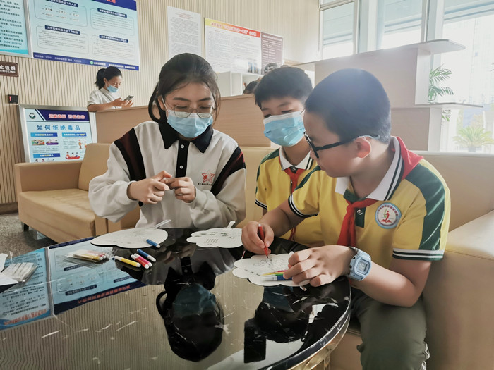 讲解结束后,陆新雅和陈许诺还分别指导小学生们进行以古诗词和成语故事为主题的纸扇手工绘制活动,使小学生在喜爱的手工活动中接受民族传统文化的熏陶。